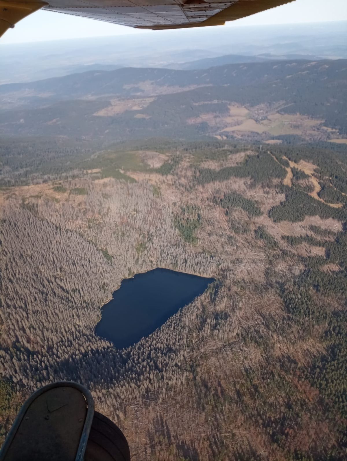 Letecké foto Svarohu a Čertova jezera po napadení kůrovcem 2024