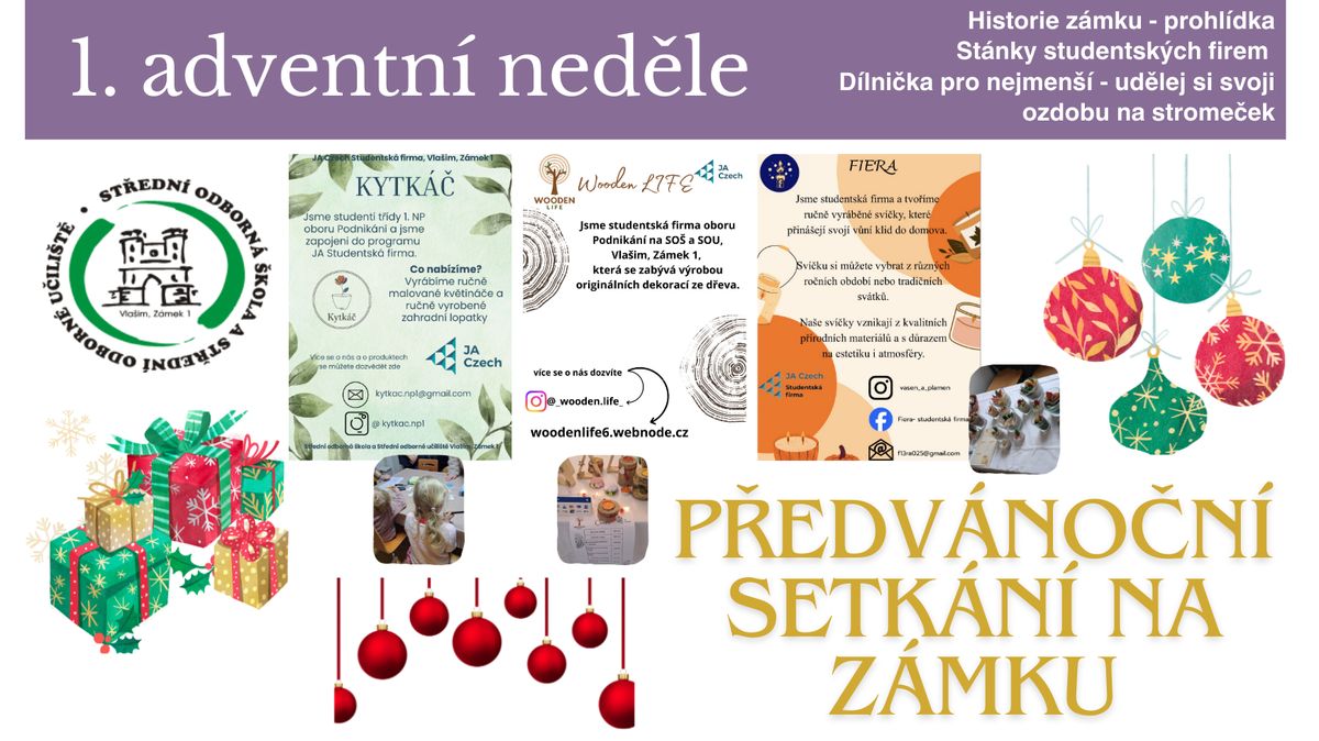 První adventní neděli se na Střední odborné škole a Středním odborném učilišti ve Vlašimi konala předvánoční akce, která přilákala mnoho návštěvníků. Akce byla spojena s adventem a nabídla pestrý program pro všechny věkové kategorie.