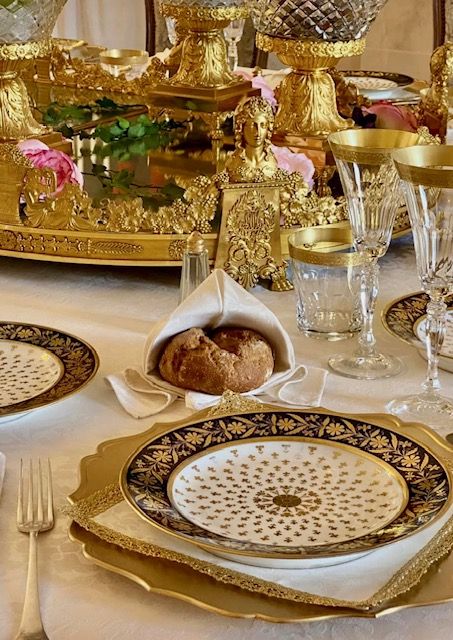 Francouzský porcelán a české sklo. Slavnostně prostřený stůl v jídelně zámku