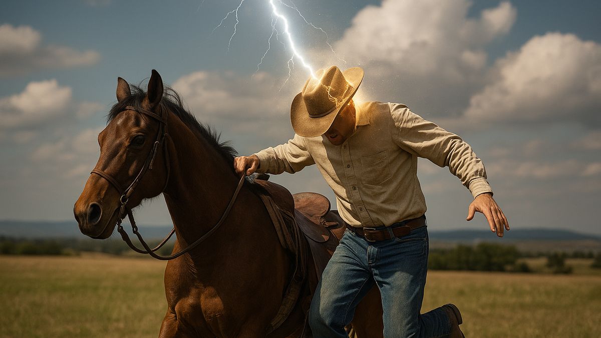 Byl to obyčejný texaský den. Suchý vzduch, prašná silnice a líný vítr, který se proháněl mezi ohradami. Scott Knudsen, z páté generace kovbojů z Texasu, měl před sebou běžné dopoledne. Práce kolem koní, kontrola ohrad a krátká projížďka po pastvině. Nebe bylo jasné, možná trochu zamlžené, ale rozhodně nic, co by naznačovalo bouřku. Jenže právě to je na blescích nejzrádnější, udeří, když to člověk nejméně čeká.