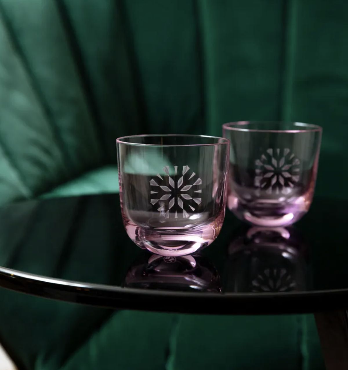 Broušené skleničky z kolekce KORBIČKA HOME, které vznikly ve spolupráci se sklárnou Rϋckl.