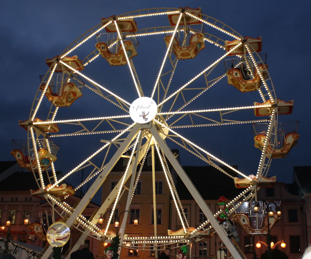 Není to jen adventní městečko, co tvoří krásnou vánoční atmosféru. Oči mých dětí se rozzářily u výlohy jedné optiky, která se nachází v jedné z uliček poblíž náměstí. Každoročně je zde vystavena pohybující se vánoční výzdoba, kterou tvoří vyhlídkové kolo, kluziště s bruslaři, či hory s lanovkou.