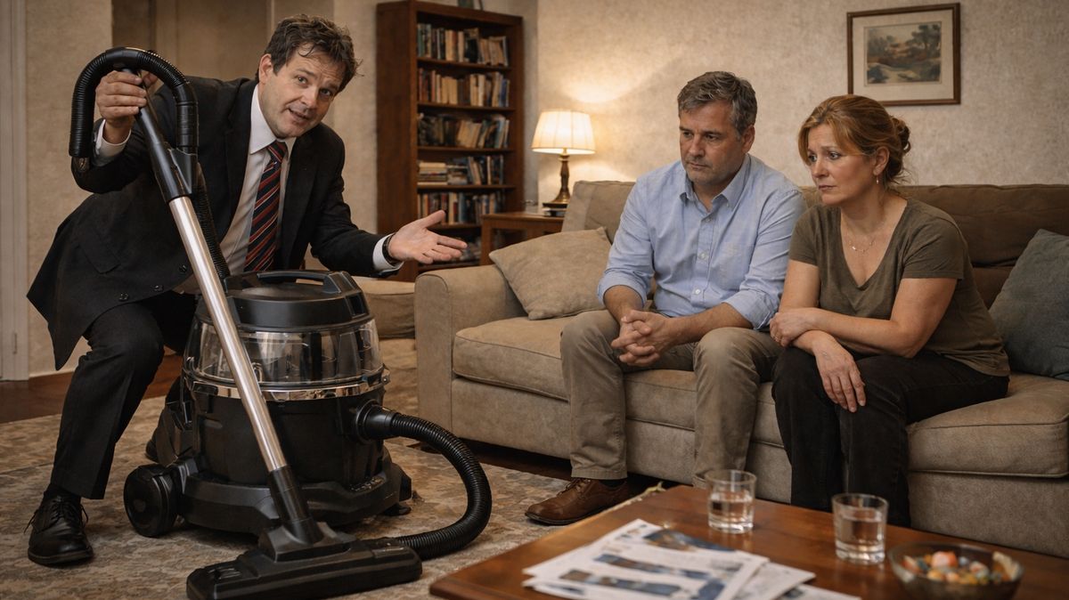 Od té doby jsem se podobným večírkům vyhýbal jako čert kříže, ale občas se stalo, že jsem od opravdu dobrých kamarádů dostal nabídku, kterou nešlo odmítnout. Jednou jsem se nechal uprosit, abych udělal dobrý skutek a souhlasil s návštěvou jednoho zoufalého prodejce, který si přivydělával domácím prodejem jakýchsi vodních vysavačů. Jejich cena se pohybovala kolem osmdesáti tisíc a to v době, kdy průměrná mzda dosahovala výše zhruba devět tisíc. Dotyčný dopředu věděl, že si nejspíše nic nekoupím. Šlo mu jen o to, abych mu potvrdil, že u nás byl. Tehdy jsme ještě bydleli v bytě ve čtvrtém patře bez výtahu. Chudákovi prodejci nezbylo, než vyvléci těžký vysavač připomínající dieselovou elektrocentrálu po úzkém schodišti až do nejvyššího patra. Když stanul u našich domovních dveří, připomínal posla, který právě oznamuje vítězství Řeků nad Peršany slovy : „Zvítězili jsme“, načež vyčerpáním padne a zemře.