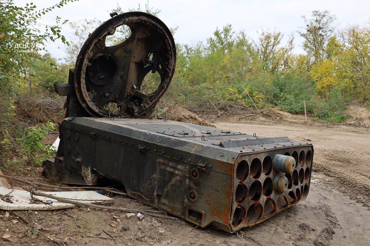 Část zničeného ruského raketometu. Bez zbraní by této technice nebylo možné čelit.