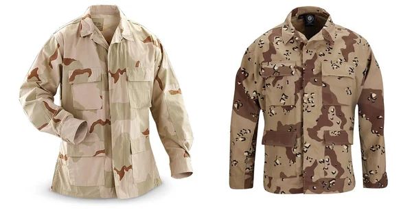 Vlevo DCU 3 barevná pouštní uniforma a vpravo DBDU 6 barevná pouštní uniforma