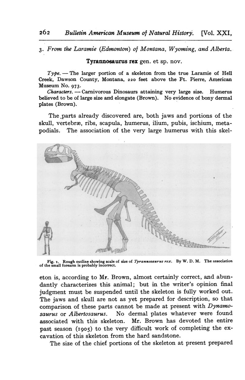 Osborn, H. F.; Brown, B. (1906). Tyrannosaurus, Upper Cretaceous carnivorous dinosaur. Bulletin of the AMNH. 22 (16): 281–296.