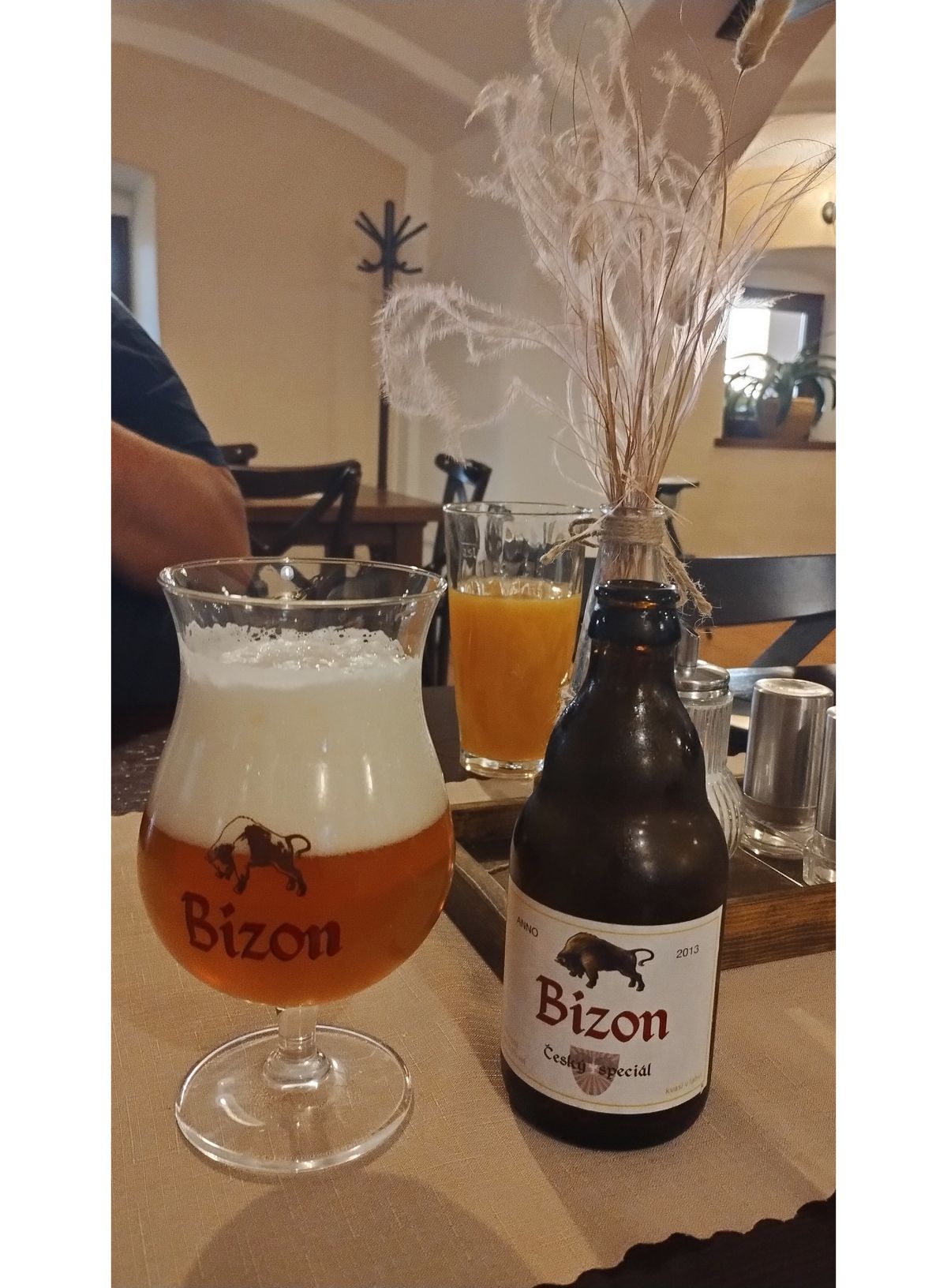Po zhlédnutí televize a krátké obhlídce stájí jsme zamířili do restaurace. U stolu s Milanem jsme probírali dnešní cestu ( počítali jsme ujetou vzdálenost: místo plánovaných 65,8 km jsme ujeli 77,6 km, k čemuž jsme ještě ušli zhruba 10 km pěšky). a přišel hlavní hřeb večera. K místnímu pivku jsme si objednali specialitu: bizoní steak na seně.