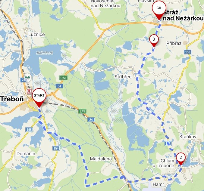 Čekalo nás 33 zvlněných kilometrů. Snažili jsme se držet polních a lesních cest. Jihočeská krajina, plná rybníků a hlubokých lesů, byla balzámem na duši. Svaly se adaptovaly, šlapání bylo snazší a my si konečně užívali scenérii.
