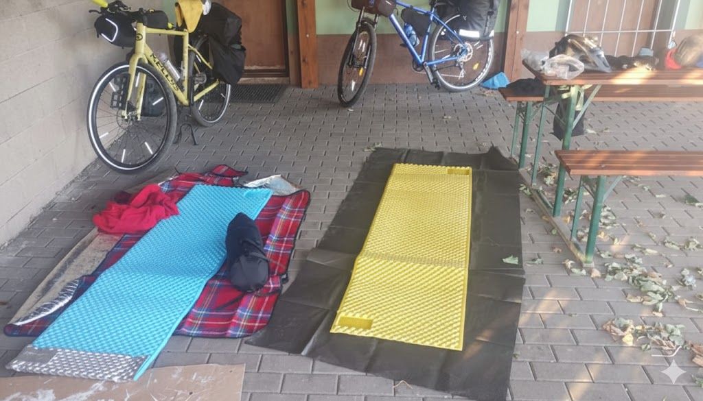 Naše provizorní útočiště jsme našli na místním hřišti. Když jsme se ráno soukali ze zvlhlých spacáků, mlčky nás pozoroval starší místní muž se psem. Nebyla v tom žádná nevraživost ani podezřívavost, kterou někdy cítíte v anonymních městech. Spíše ona rozumná, staletími prověřená opatrnost hostitele, který si hlídá svůj kraj, své tradice a své lidi.
