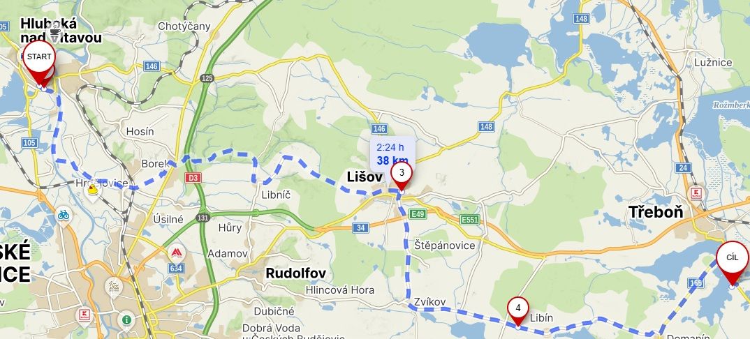 Odpočinek byl krátký. „Musíme přidat, Milane! Čas nás brutálně honí. V kempu máme být v šest,“sledoval jsem hodinky a tempo muselo drasticky stoupnout. Z Lišova, přes Vlkovice a Libín, jsme šlapali jako písty parního stroje.