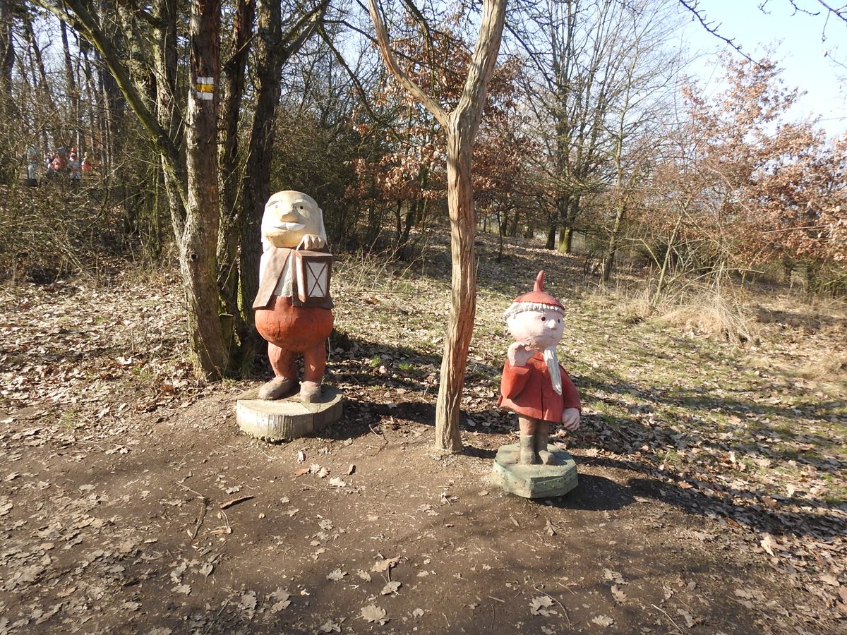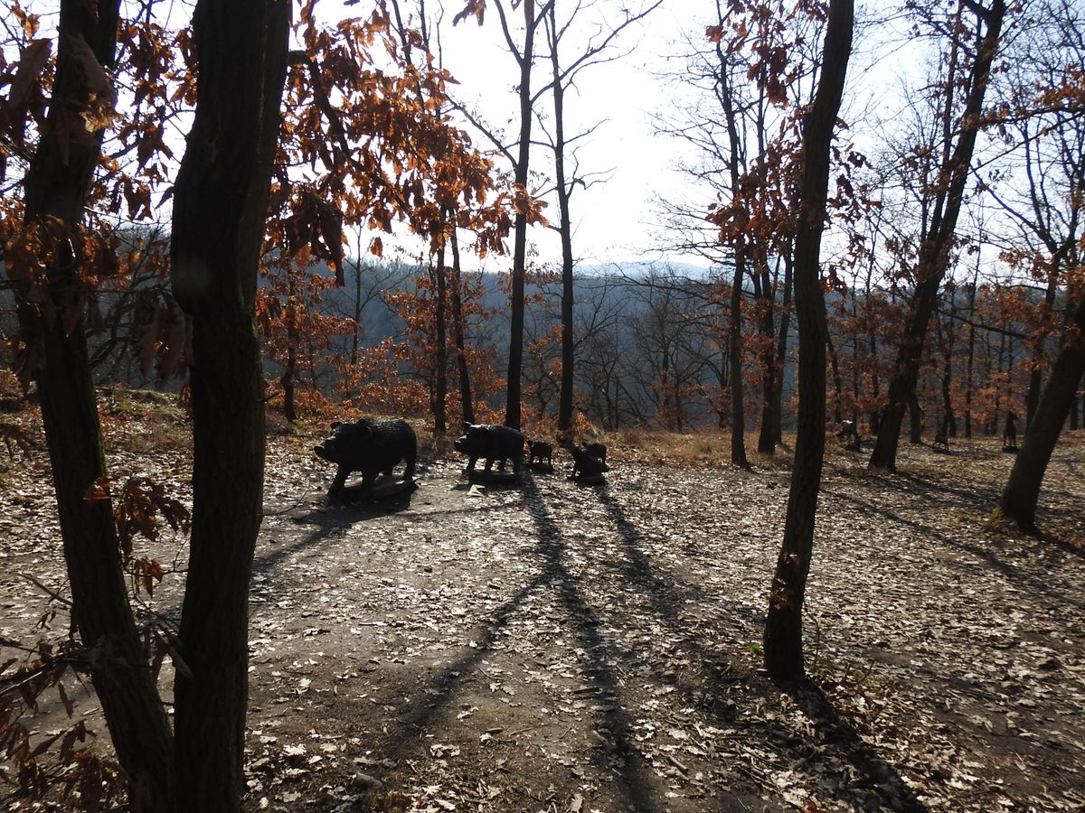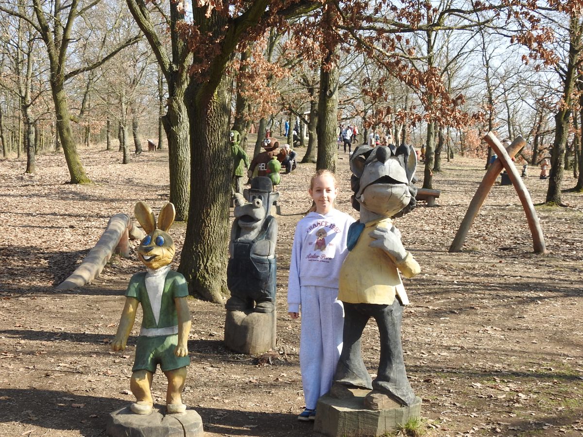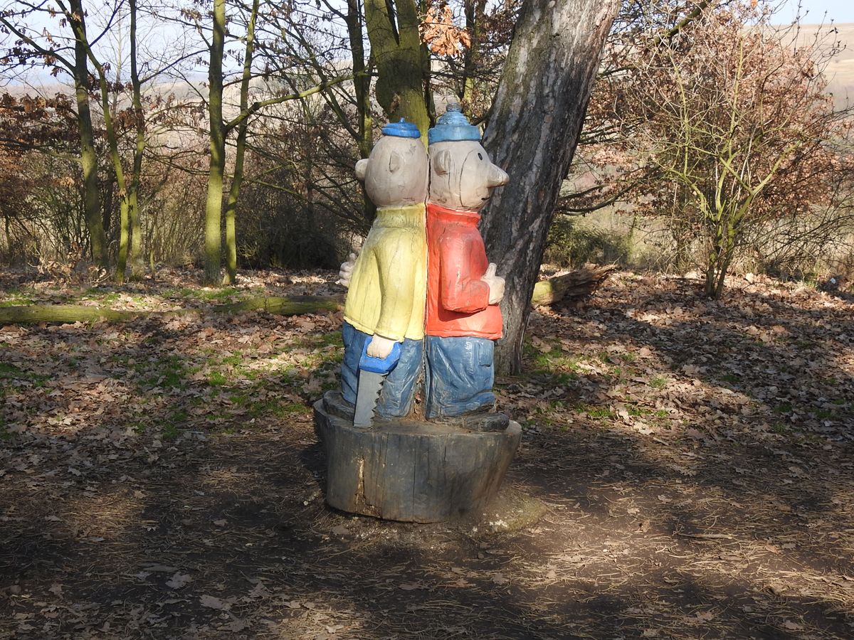 Právě u Áji a Fíka začíná asi kilometr a půl dlouhá stezka po dlouhém skalním hřbetu, na kterém narazíte na asi 160 dřevěných plastik. Tady i mrzoutovi naskočí úsměv na tvář.