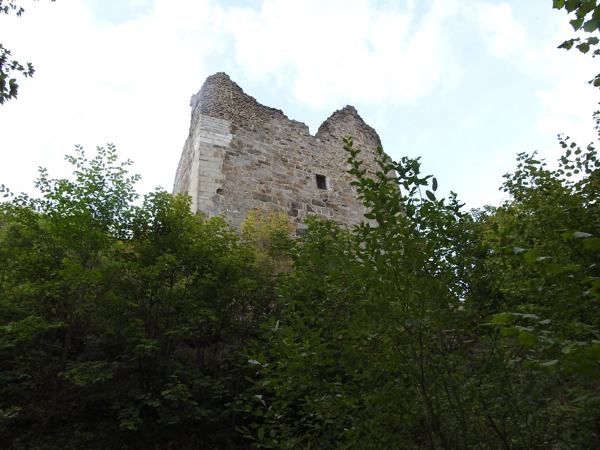 Zbytky věže byly částečně konzervovány v roce 1923. Hradní kopec je dvouvrcholový, hrad stojí na jižní části. Donjon má půdorys 16 krát 16 metrů, věž byla třípatrová, hlavní obytný sál se nacházel v prvním patře, vytápěli ho krbem. Spolu se šesti románskými okny je to asi vše, co uvidíte při komentované prohlídce. Hrad měl i studnu, obyvatelé nemuseli spoléhat na dešťovku.