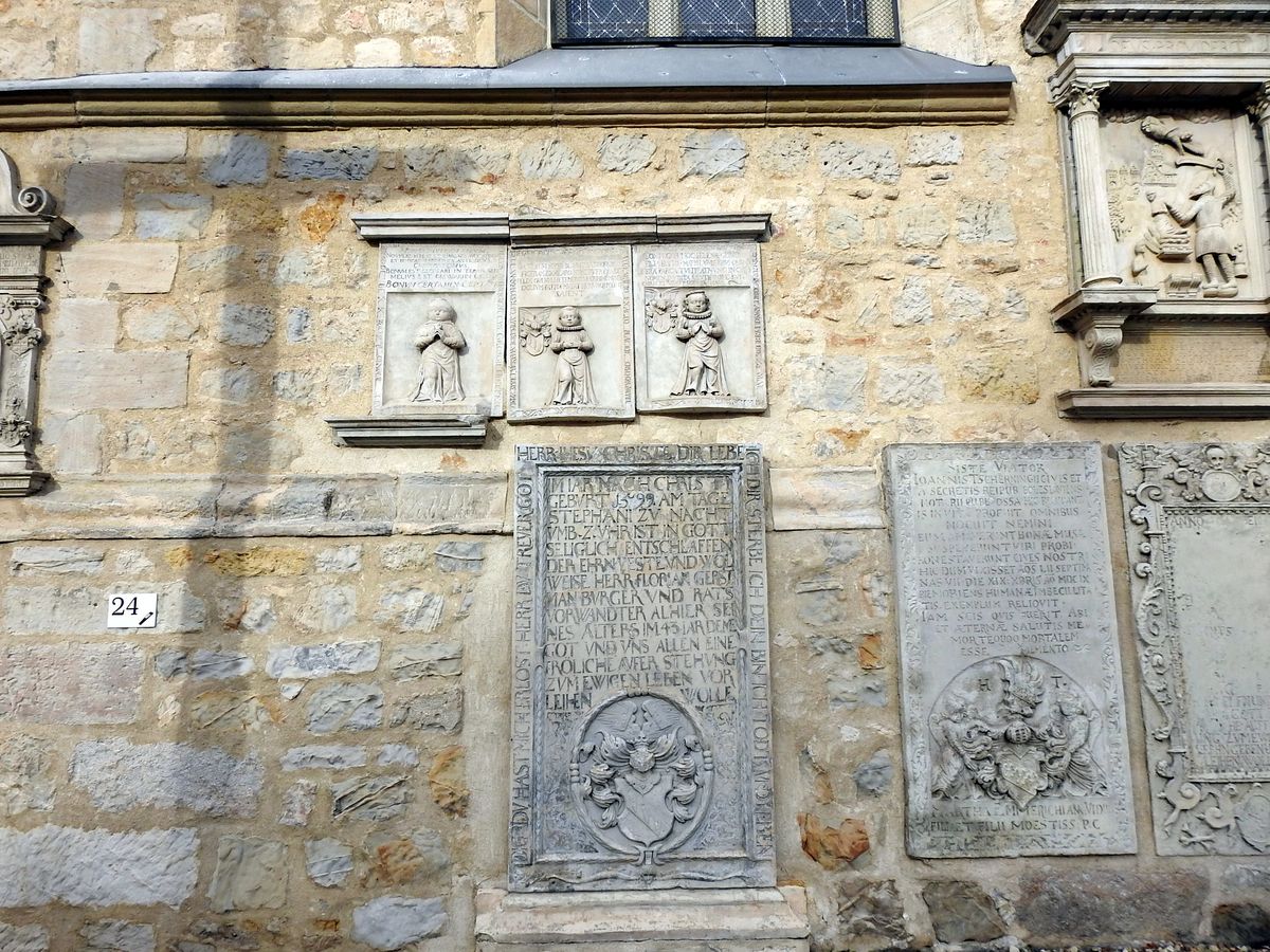 Další tabule je připevněná na zdi radnice postavené v roce 1535. Nynější sídlo městského úřadu představuje klasický barokní sloh s gotickými prvky ve věži a interiéru.