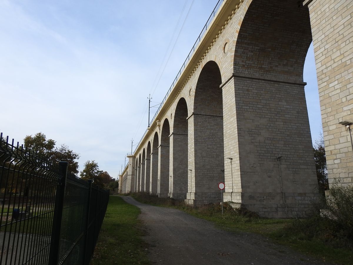 Pak jsem šel podle plánu města, je jich tu několik na infotabulích, okolo dalších významných budov, až jsem se dostal k železničnímu viaduktu, obdivované technické památce.