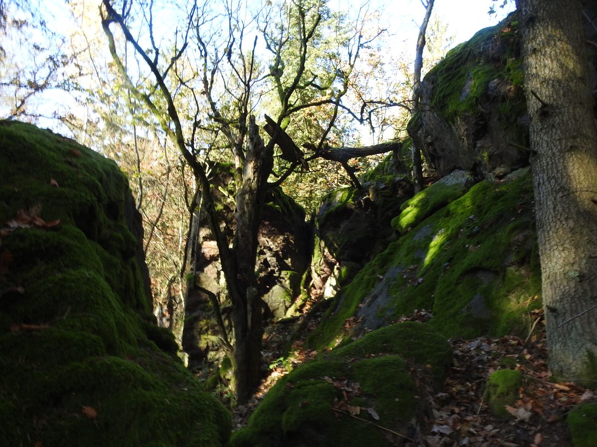 Uvidíte jen křovím a náletovými dřevinami zarostlé skály, takže opravdu dřieždie.