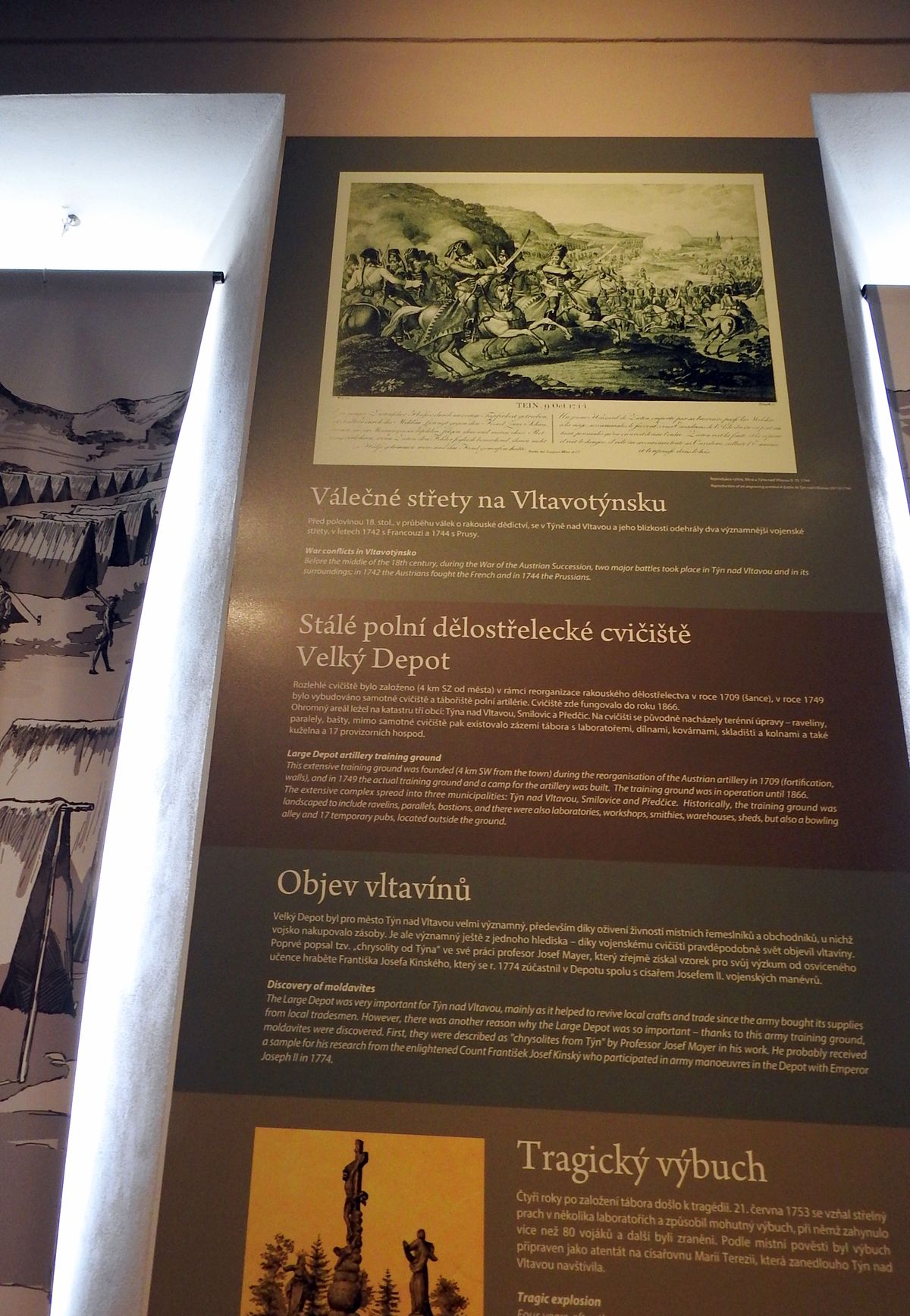 Mimo jiné tu mají hezkou sbírku vltavínů, na „zelené sklo“ naráželi i dělostřelci. Ti je vyměňovali za potřebné zboží s místními kupci.