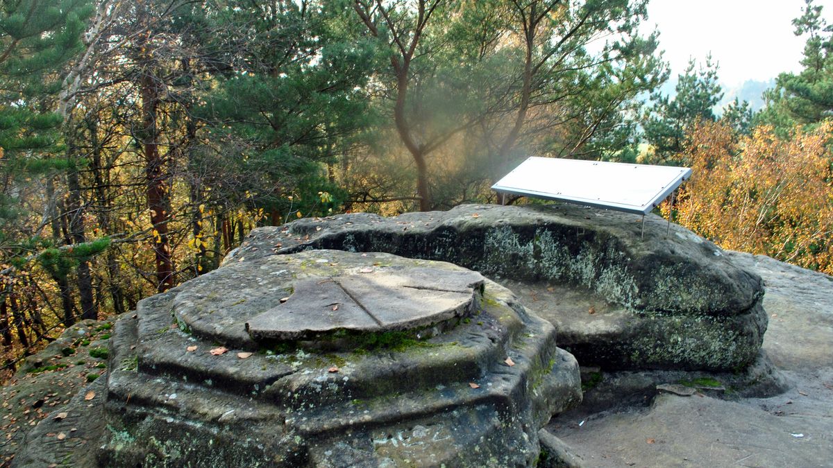 Skalní vyhlídka se slunečními hodinami