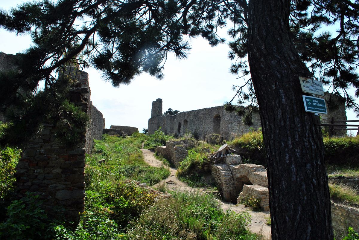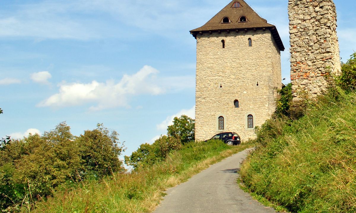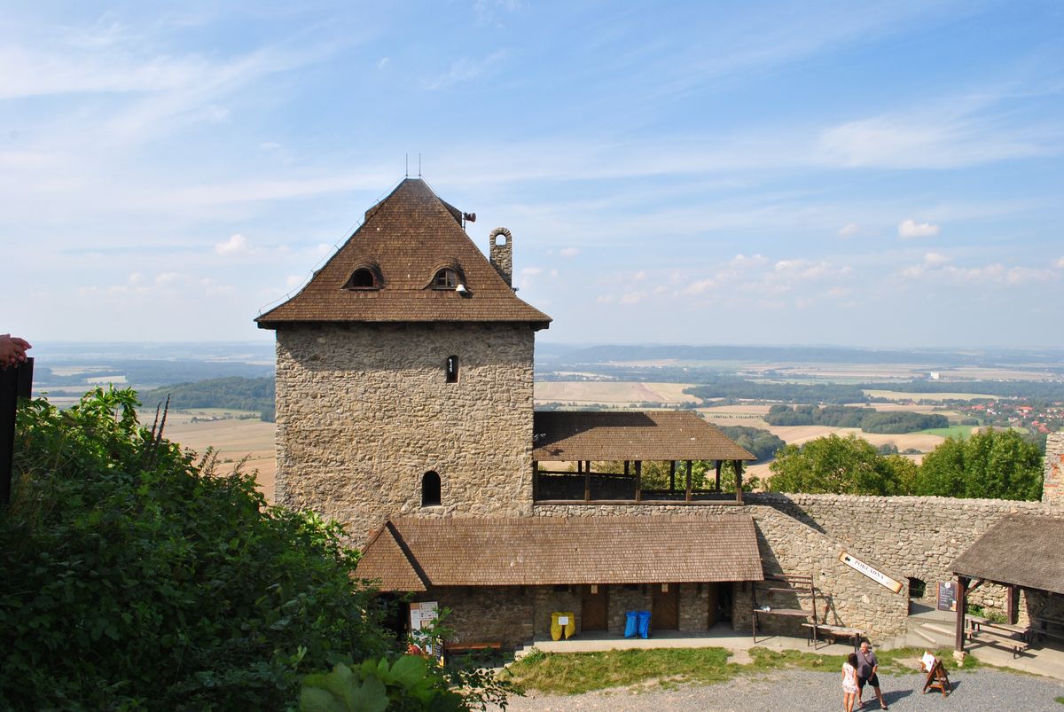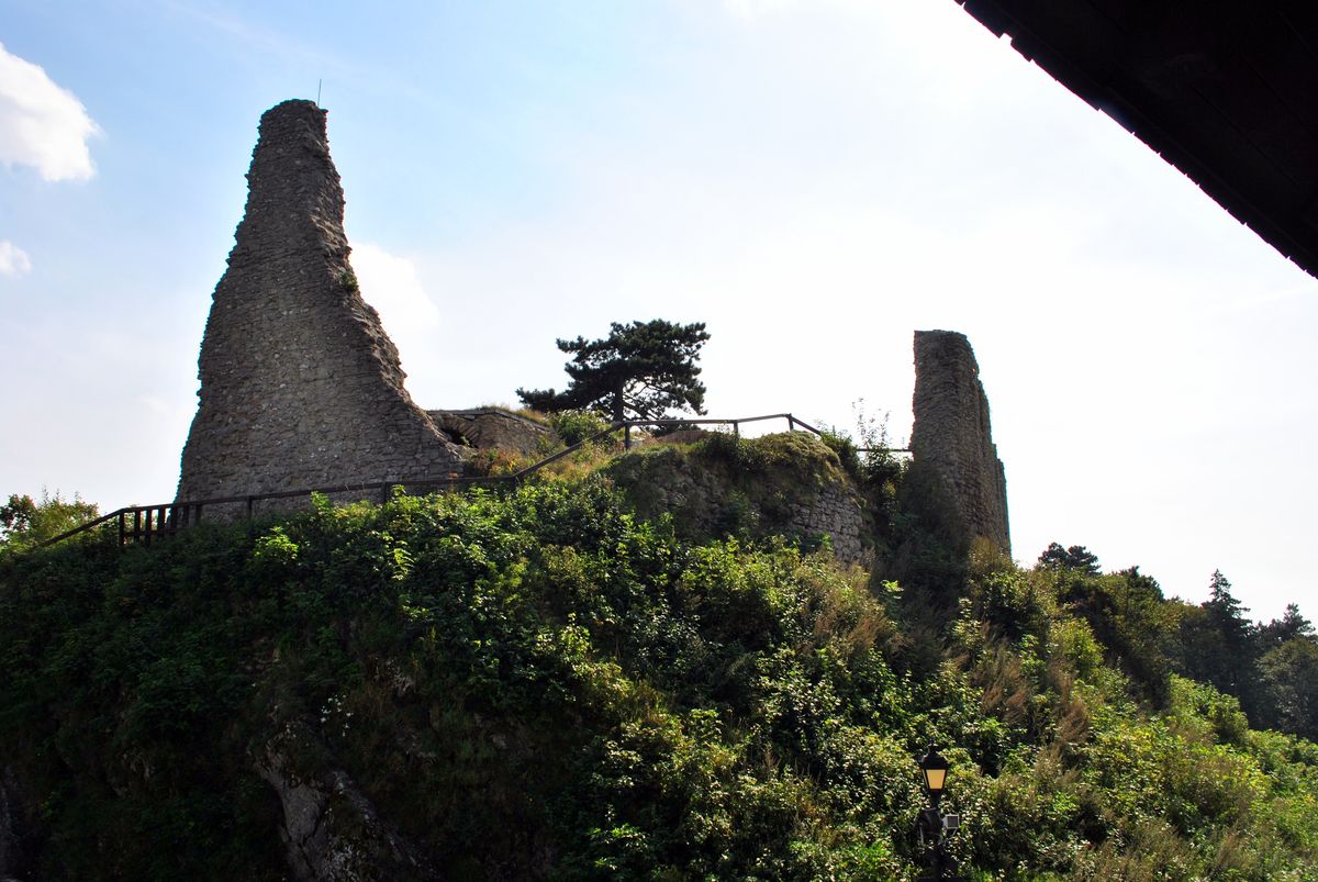 Asfaltová cesta od kostela není na výstup náročná, duši vypustíme maximálně v hradní krčmě po přemíře konzumace. Po zhruba patnácti minutách chůze z obce se octneme pod ruinou paláce a vpředu se otevírá pohled na strážní věž. Je trojúčelná: v přízemí má občerstvení, s dobře ošetřenými nápoji i dalším sortimentem, v patře pokladnu a prodej suvenýrů.