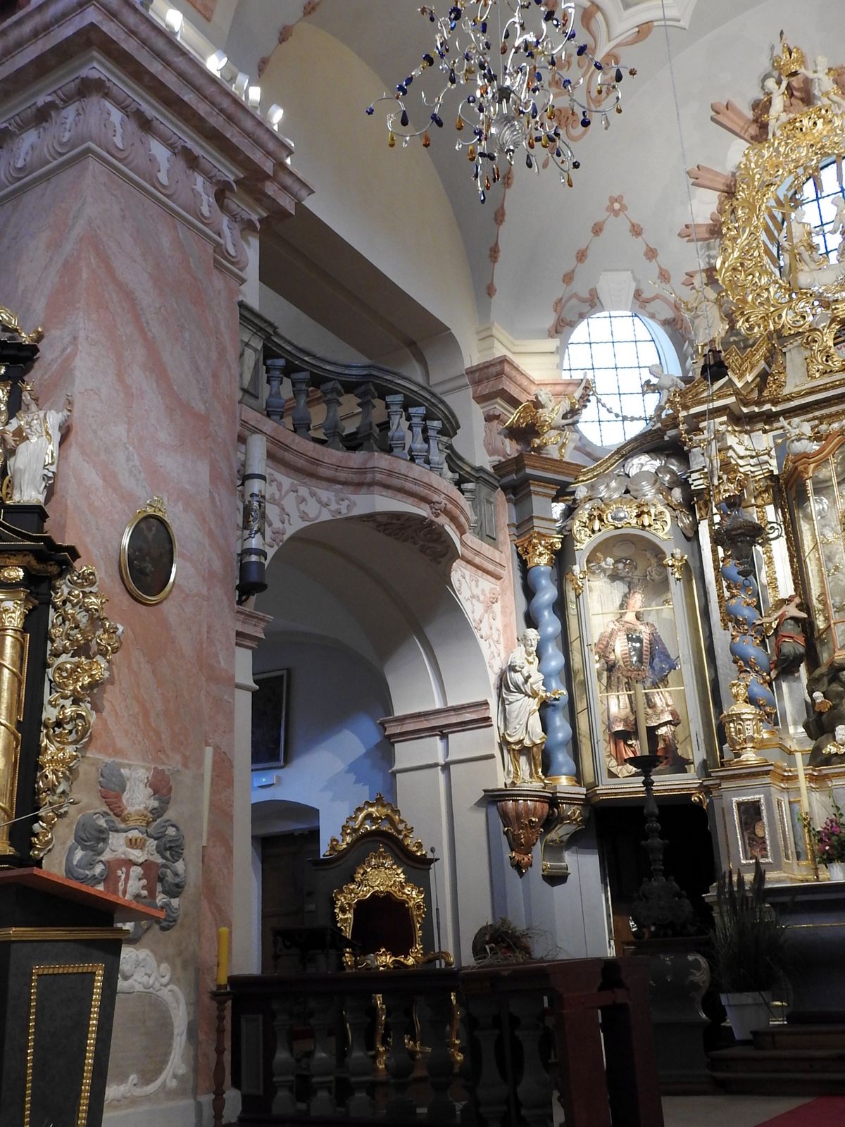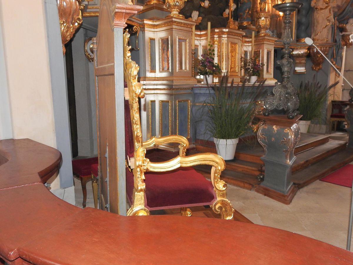 Jedna ze svící v presbytáři, vlevo pod balustrádou