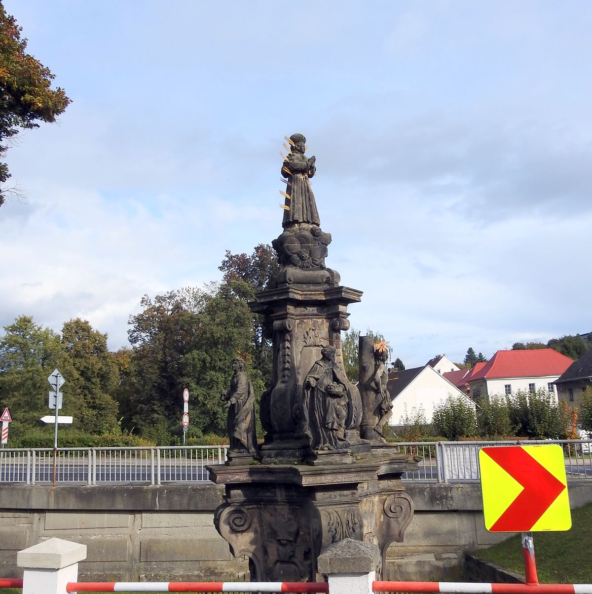 Barokní sloup stojí v místě, kde byla nalezena soška