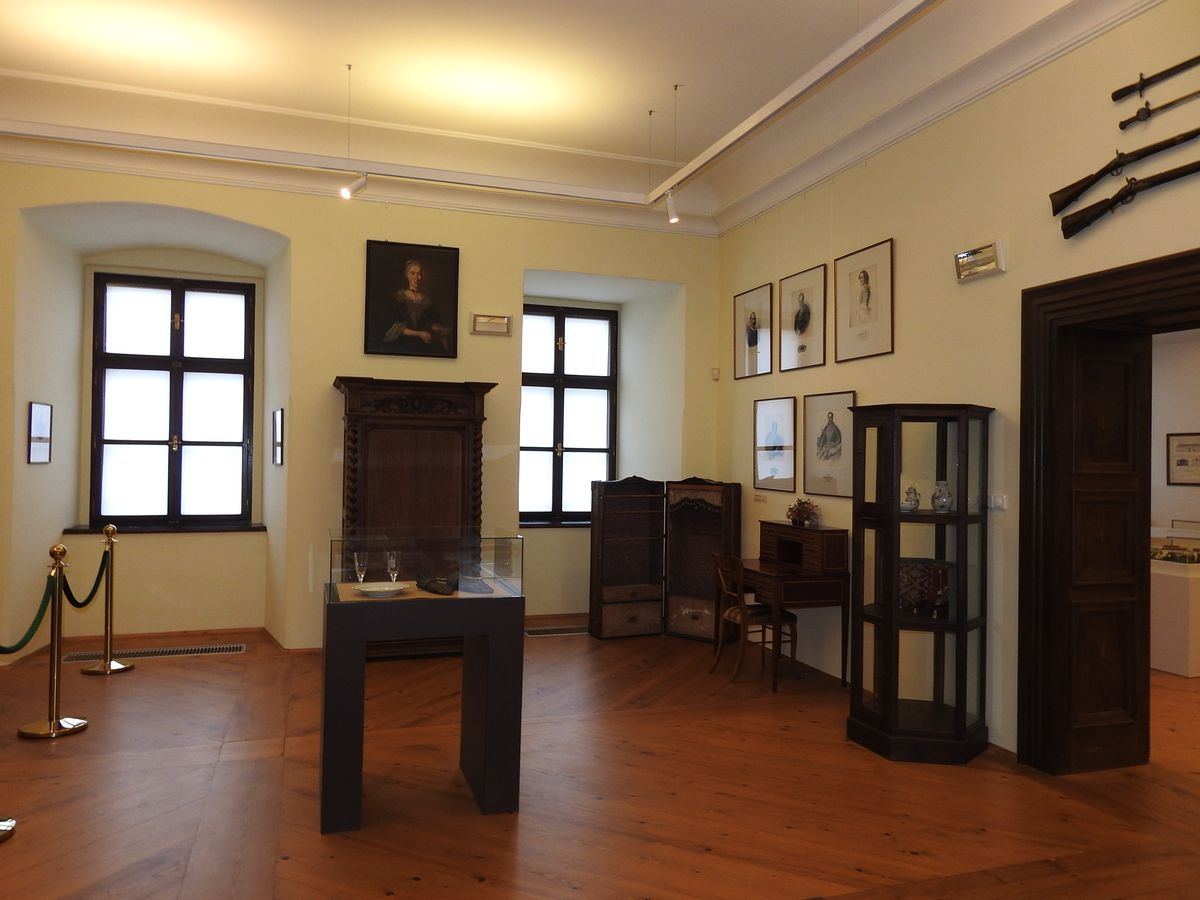 Než se dostaneme do místnosti, která se věnuje vězeňství, procházíme řadou sálů s historickým mobiliářem, není původní, ale zapadá do koncepce expozice.