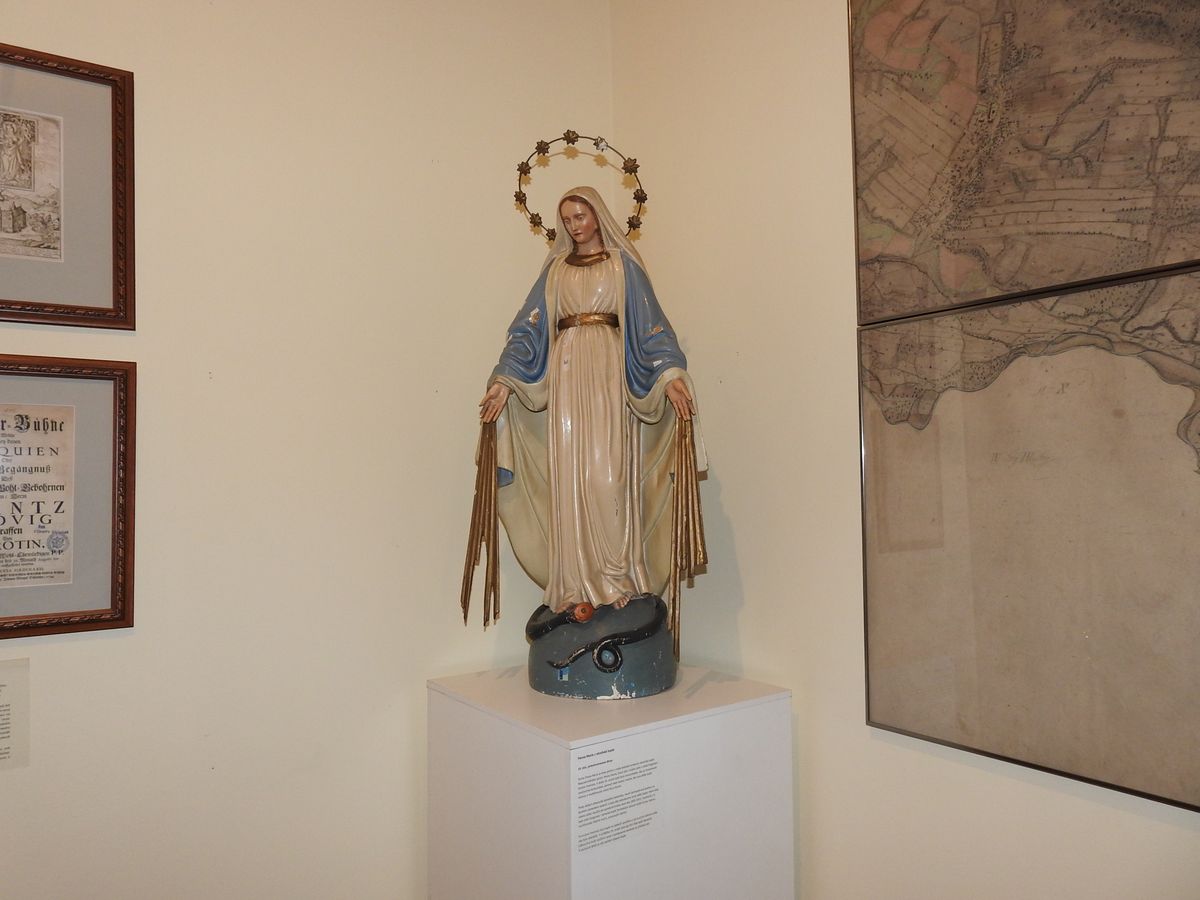 V místnosti stojí v rohu socha Panny Marie, je t