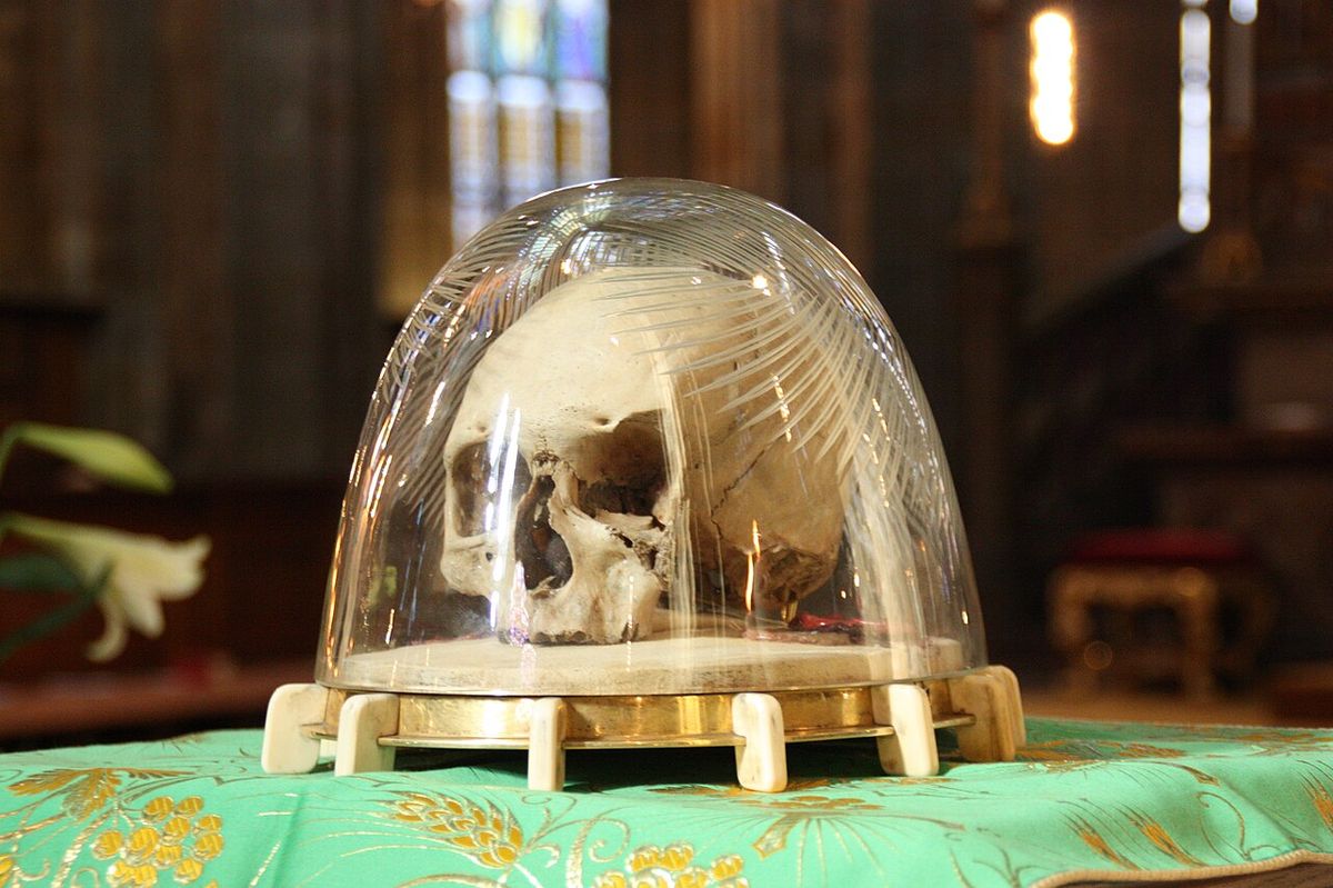 Lebka svatého Vojtěcha, původně z polského Hvězdna, kterého ve východním Prusku utloukli veslem pohané, když je chtěl obrátit na křesťanství