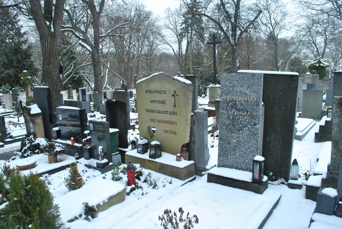 Dostanete se sem, když se vydáte ze vrat kláštera vpravo, hlavní brána je asi 500 metrů. Při špatném počasí je rozsáhlé pohřebiště zavřené. Nedaleko se nachází plochodrážní stadion na Markétě, kde estébáci při pohřbu Jiřího Patočky, signatáře Charty 77, nechali túrovat motorky, aby nebyly slyšet projevy řečníků. Nad hlavami pečlivě lustrovaných účastníků létal vrtulník…