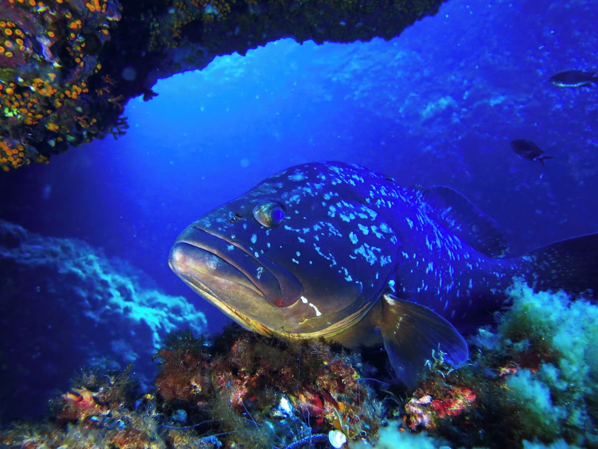 Kanic vroubený (Epinephelus marginatus) v mořské chráněné oblasti Isola di Ustica
