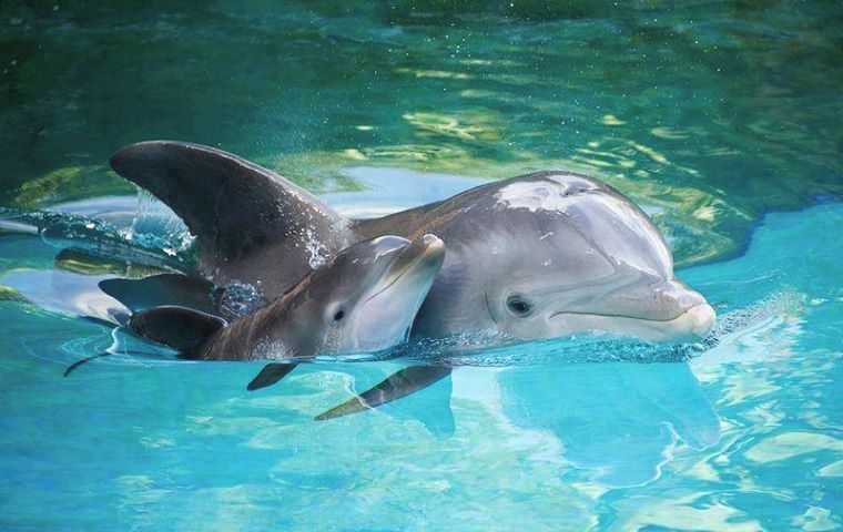 Samice delfína skákavého s mládětem