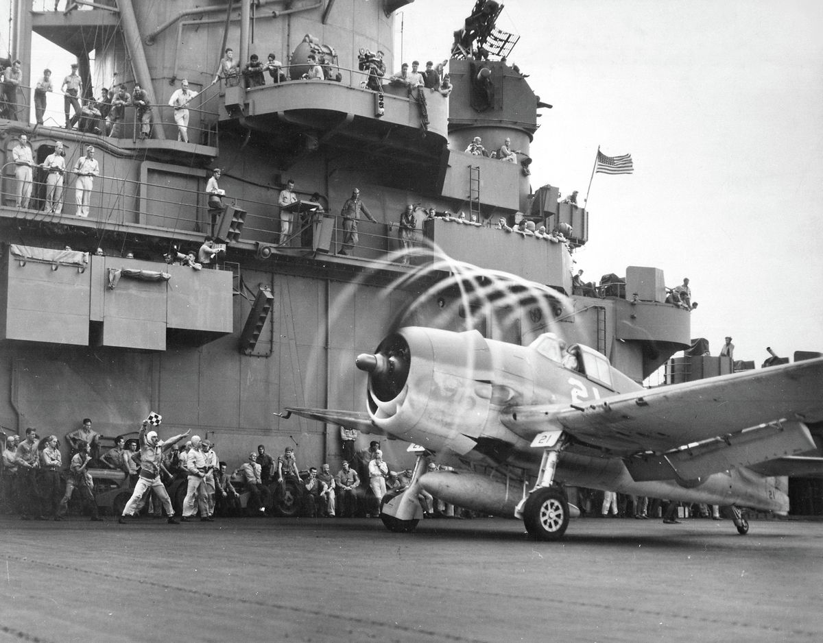 Grumman F6F-3 Hellcat na palubě USS Yorktown, 20. listopadu 1943