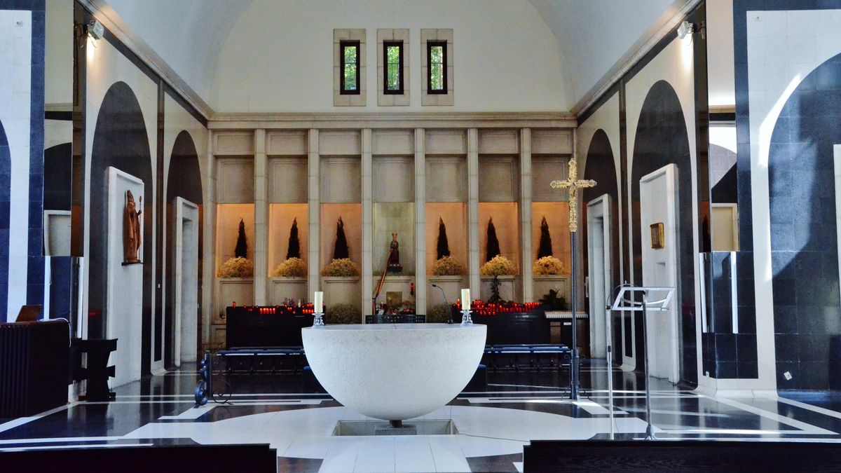 Jedním z nejvýraznějších prvků je otevřená křížová chodba (ambit) s velkými oblouky, které rámují pohledy na hory a nebe. Architektura zde neuzavírá věřícího do tmavého prostoru, ale naopak ho otevírá přírodě a světlu.