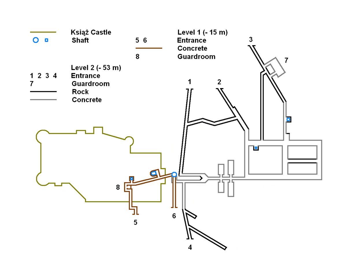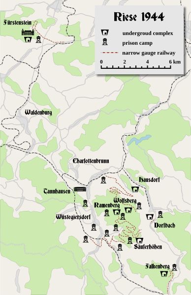 Od poloviny roku 1943 začali Němci razit rozsáhlé komplexy chodeb, hal a laboratoří v Sovích horách i pod zámkem Książ v Dolním Slezsku. Měly sloužit jako továrny na moderní zbraně, úkryty před bombardováním i možné zázemí pro nacistickou elitu. Stavba byla megalomanská, v roce 1944 zde pracovalo až 28 000 nuceně nasazených dělníků z celé Evropy. V nelidských podmínkách pracovních táborů i štol zahynuly tisíce lidí.