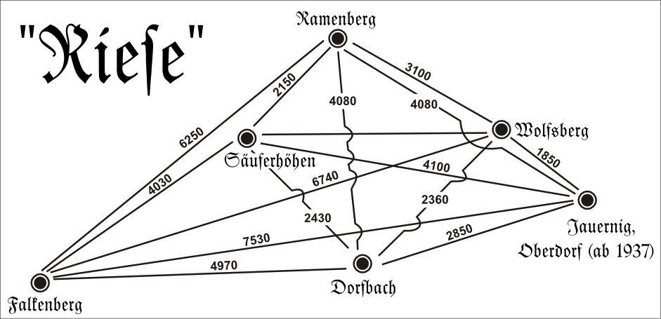 Mapa projektu Riese v roce 1944