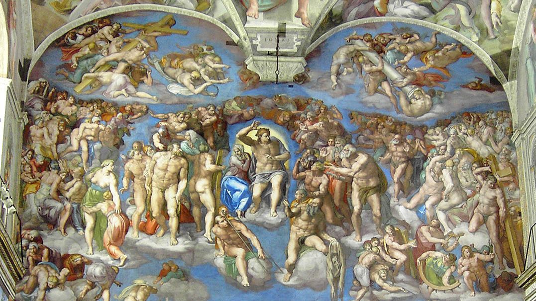 Michelangelo nebyl jen mystik a anatom, byl to také člověk s velkým egem a smyslem pro ironii. Svou nechuť k papeži Juliu II. a jeho dvoru údajně vtělil přímo do maleb.
