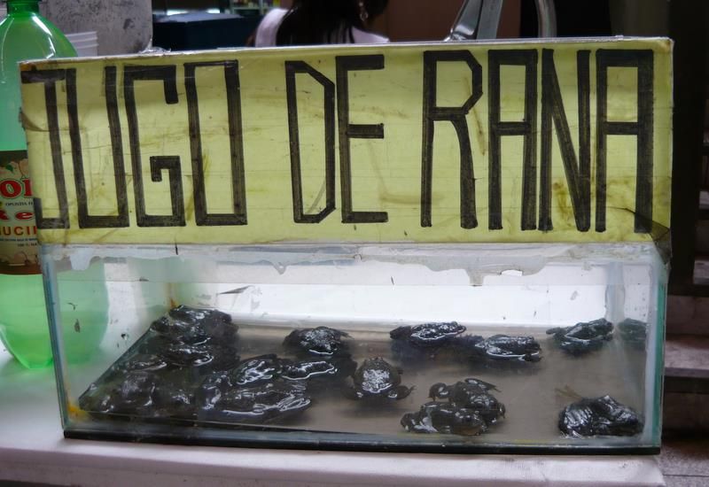 Žabí džus k dostání na trhu v Arequipě v Peru