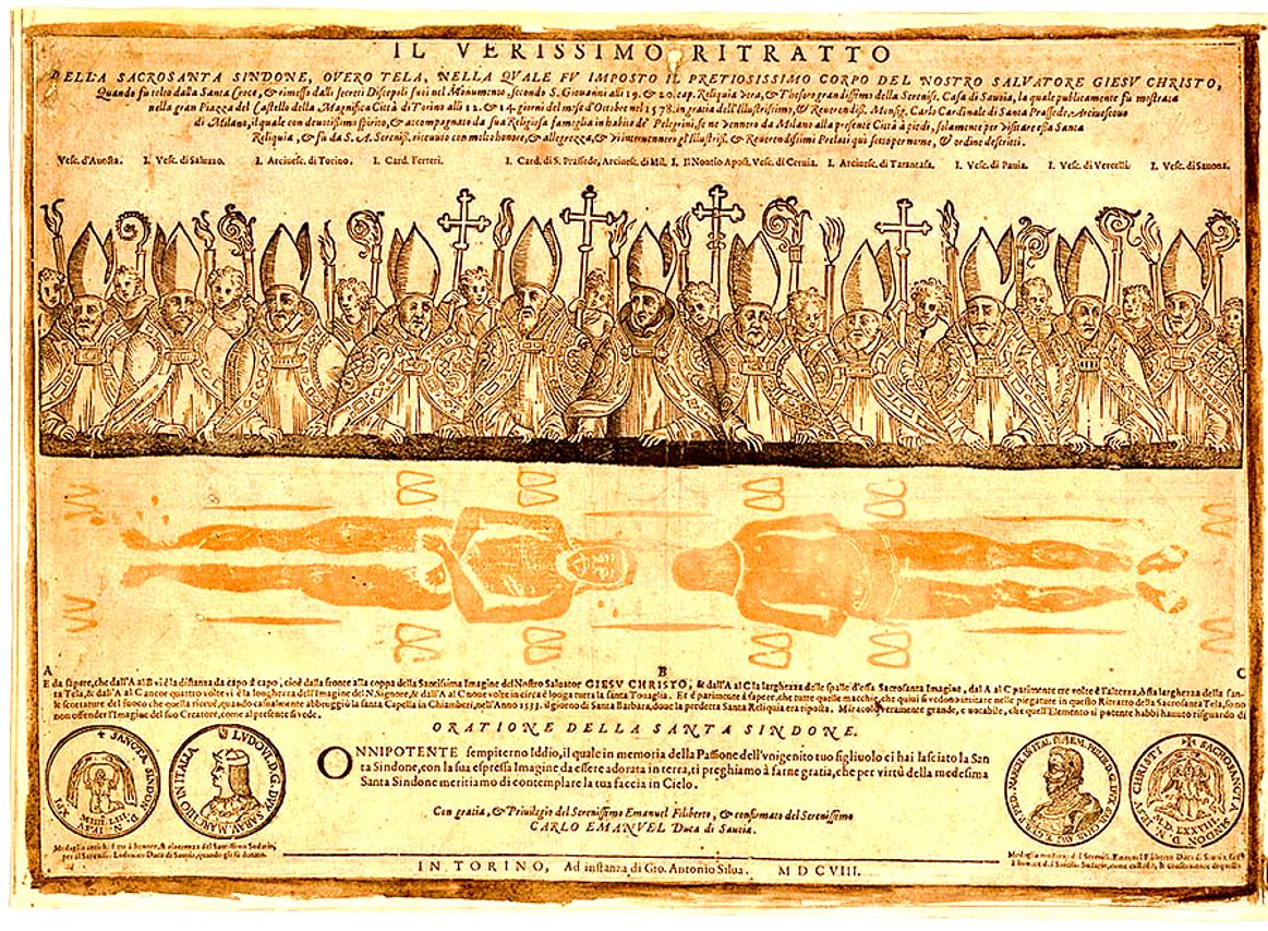 Vyobrazení Turinského plátna na mědirytině z roku 1608