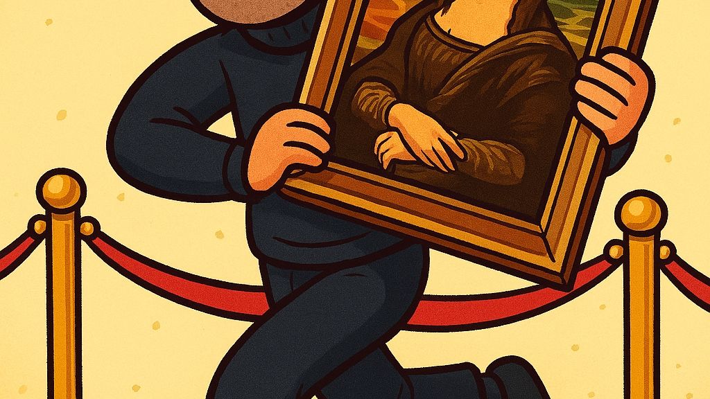 Jedním pohybem sejme rám, odstraní ochranné sklo a plátno schová pod svůj plášť. Vychází ven, jako by odnášel jen další kus práce. Ironií osudu mu cestou dokonce jeden opravář podrží dveře. Nikdo netuší, že právě asistuje při největší umělecké loupeži století