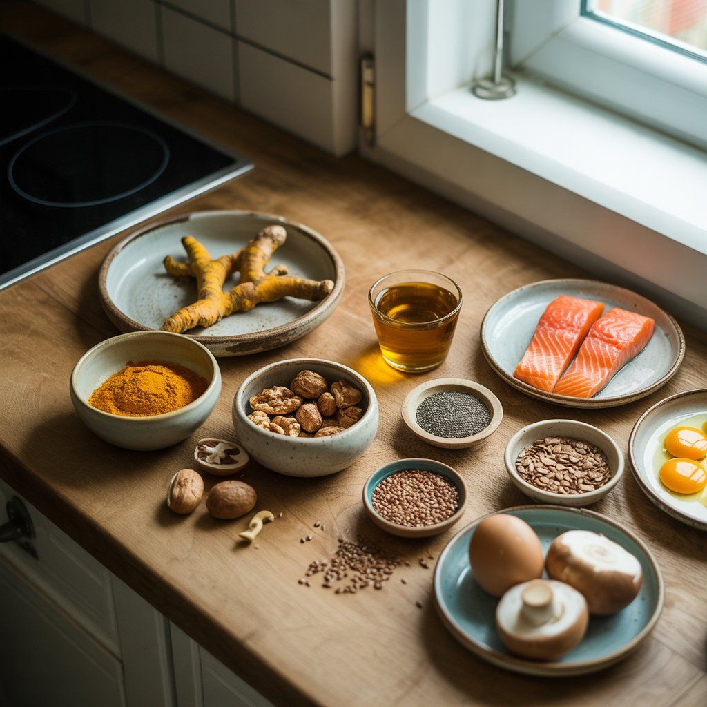 Omega-3 mění strukturu buněčných membrán a tlumí tvorbu zánětlivých cytokinů. Kurkumin zasahuje přímo do signální dráhy NF-κB, hlavního dirigenta zánětu. A vitamin D reguluje imunitní reakce, aby nepřekročily svůj rámec.