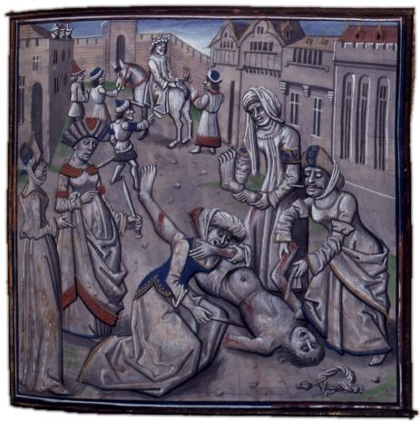 Smrt císaře Andronika I. na miniatuře z 15. století