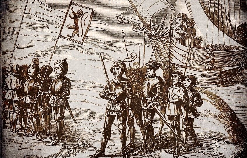 Španělští dobyvatelé při vylodění v Jižní Americe