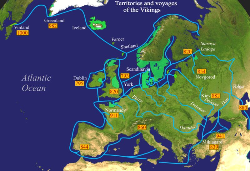 Území osídlená vikingy a trasy jejich plaveb