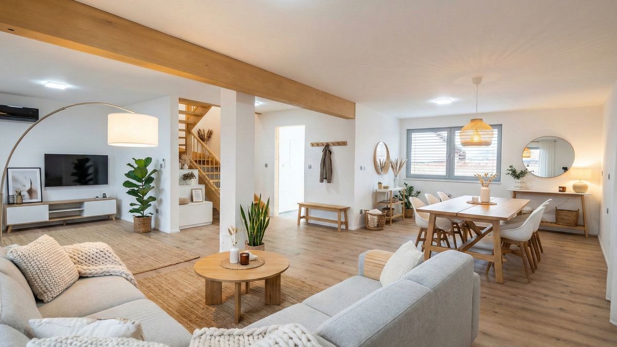 Včera jsem si hrála s jednou fotkou přesně takového prázdného obýváku, který na Srealitách strašil už měsíce. Nahrála jsem ji do jednoho z nových AI nástrojů pro virtuální staging. Vybrala jsem styl „Modern Scandinavian“ a stiskla tlačítko.