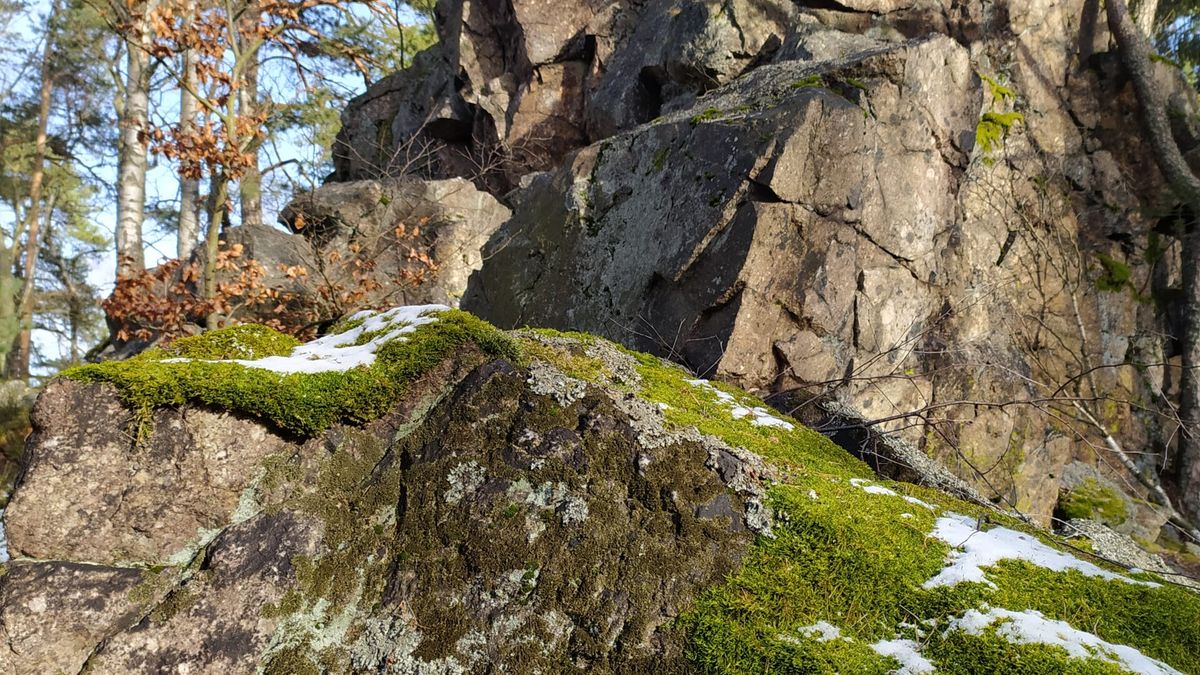 Kvůli výhledům ale lana nepotřebujete. Ne, že by to tu bylo jedno velké panorama, ale lze se pokochat pohledem na protější masiv Bábovky a Trhoně. Jen počítejte s tím, že to bude pohled skrz řídký les.