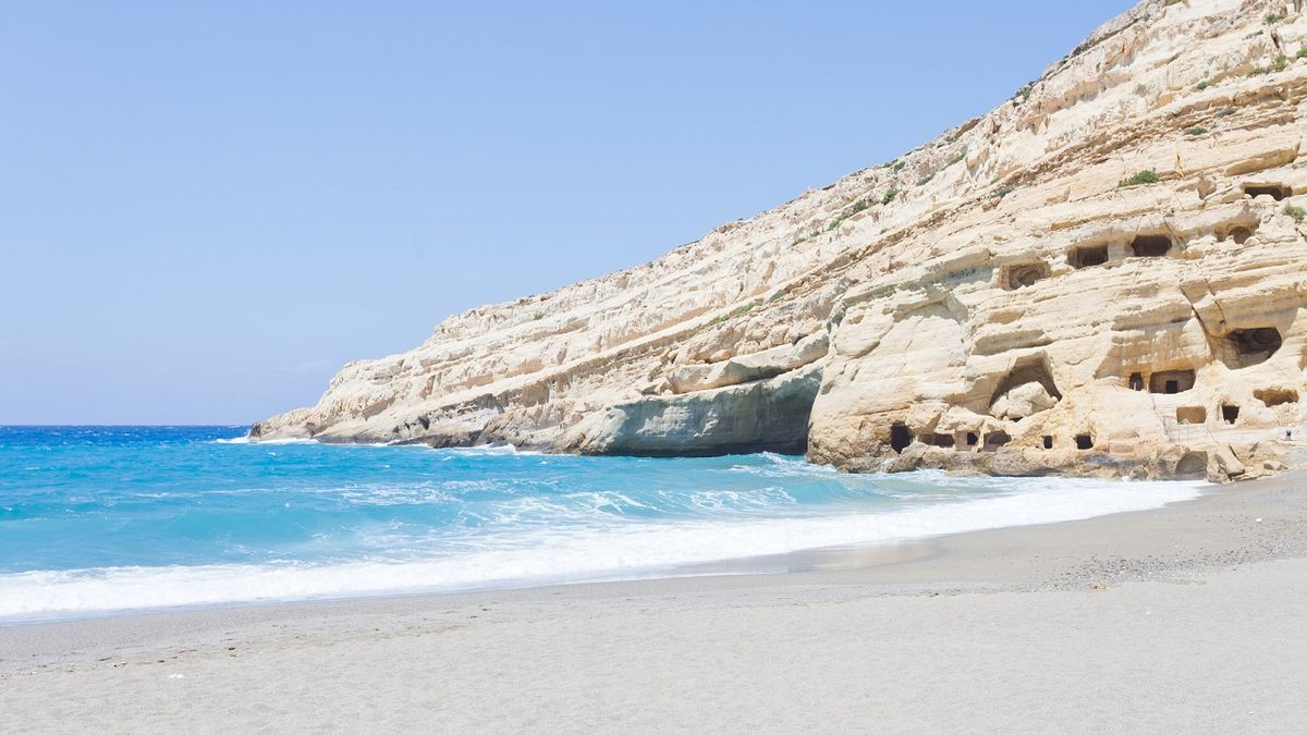Matala je legendární zátoka, kde se historie hippies 60. let potkává s antickými jeskyněmi v pískovcových skalách. Dodnes si zde na každém kroku zachovává bohémskou atmosféru, kterou dokreslují barevné nápisy v ulicích a poklidné tempo života.