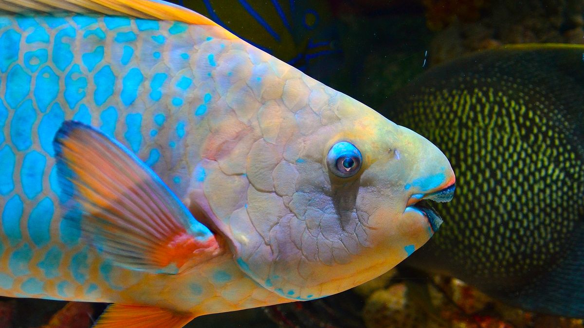 - Ploskozubci (Papouščí ryby): Získali své jméno díky silným čelistem, které připomínají papouščí zobák. Dosahují délky až 60 cm a pod vodou je můžete nejen vidět, ale i slyšet. Svými zuby totiž okusují řasy z korálů nebo skal a toto „chroupání“ se pod vodou dobře rozléhá.