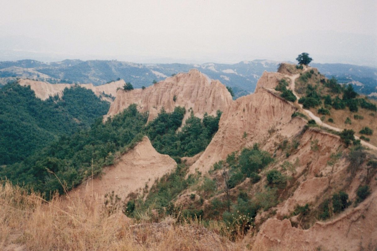 Po krátké prohlídce města jsme k večeru nasedli do vlaku do Simitli, kde jsme přespali na louce někde za městem. Směřovali jsme do městečka Bansko, které leží přímo pod pohořím Pirin. Odtud jsme se pak vydali pěšky vzhůru – až na Vichren (2914 m n. m.), zdejší nejvyšší horu. Přespali jsme pak pod horou, kousek od zdejší chaty, hned u jezírka. V noci nás navštívilo stádo koní, naštěstí byli koníci rozumní a když nás viděli ležet ve spacích, nezašlápli nás. Pokračovali jsme pak ve směru na Bunderiška porta a k chatě Kamenica. Stoupání. A pak klesání krásnými loukami a mezi jezery. Následovalo městečko Sandanski. V deníčku jsem si zapsal: „Závěr trasy na korbě malého náklaďáčku. Občerstvení (nějaký kysaný mléčný nápoj) a pak pěšky směr Laskarevo. Potkáváme pěknou velkou želvu.“ Další den: „Zase sračka, puchýř je už lepší. Pěšky do Džigurova a Laskareva. Nějaký děda nám dal velká sladká rajčata. Potom nás svezli chlapi na korbě dodávky a pak ještě jeden Bulhar ve starém žigulíku až do Melniku. Je vedro, sedíme v potoce. Večer potkáme dva kluky z Brna.“ O den později: „Prolézáme Melnik, pijeme silné červené víno v „izbe“, pak pivo. Pěkný je Rožeňský klášter i okolní písečné „pyramidy“…“