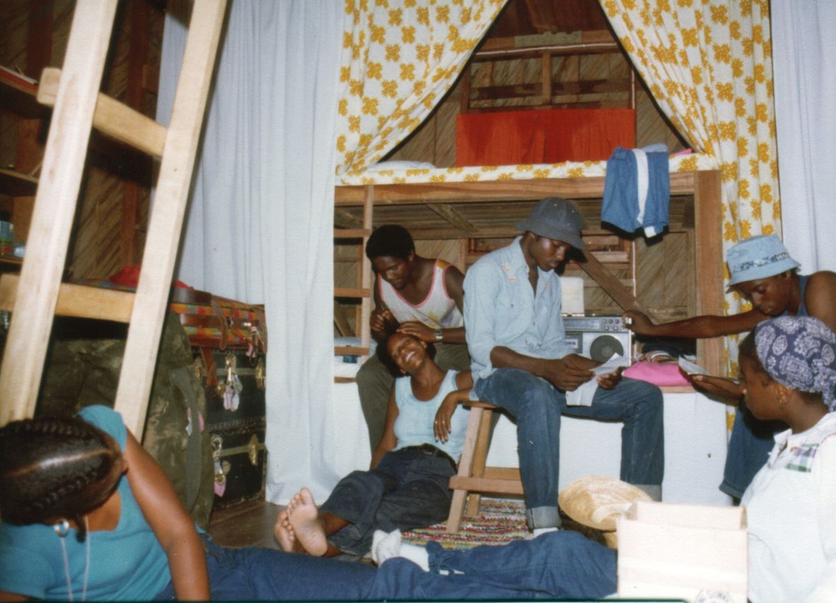 Fotka členů kultu žijících v Jonestownu. Navenek se komunita tvářila jako pospolitý ráj, kde všichni žijí a pracují společně.