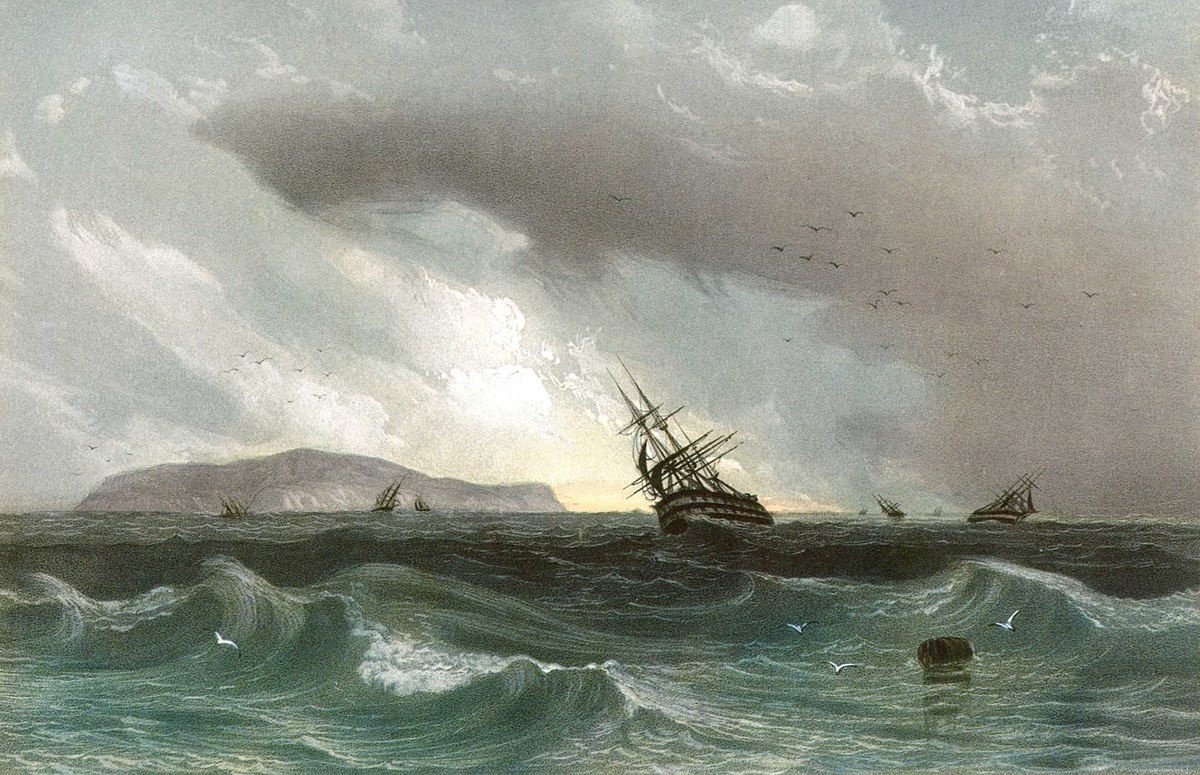 Námořní bitva poblíž Hadího ostrova na obrazu z 19. století. Tehdy nesl řecký název Fidonisi, jehož význam už byl ale tehdy stejný jako dnes.