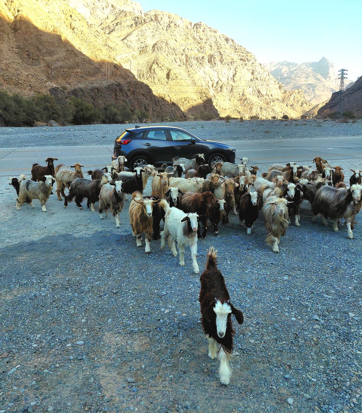 Wadi Bani Kharus se dá projet autem, je divoké a zapomenuté v horách kousek od Rustaku, kam míří návštěvníci toužící shlédnout jeden z mnoha místních hradů. Jen je třeba dávat pozor. Pokud na vás protijedoucí vůz bliká, nejedná se o pozdrav ani pokus navázat kontakt se spolucestující teenagerkou, ale o varování, že na vozovce za zatáčkou se vyskytují kozy. Upozornění – ty holky rohaté na klaxon nereagují! Není zbytí, je třeba vystoupit z auta. V kozím kolektivu to vyvolá naději, že jste je přijeli podojit, nakrmit nebo se jen tak honit. Když se s nimi trochu proběhnete, oddaně vás budou následovat. Časem je odlákáte od vozu a když k němu zpátky do sprintujete rychleji než ony, můžete pokračovat v jízdě. Tímto se omlouvám, že jsem v jednom sympatickém stádu vyvolal plané naděje na nezištné přátelství…